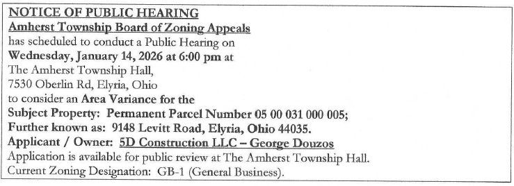Please contact the Amherst Township Zoning Inspector with any questions.
